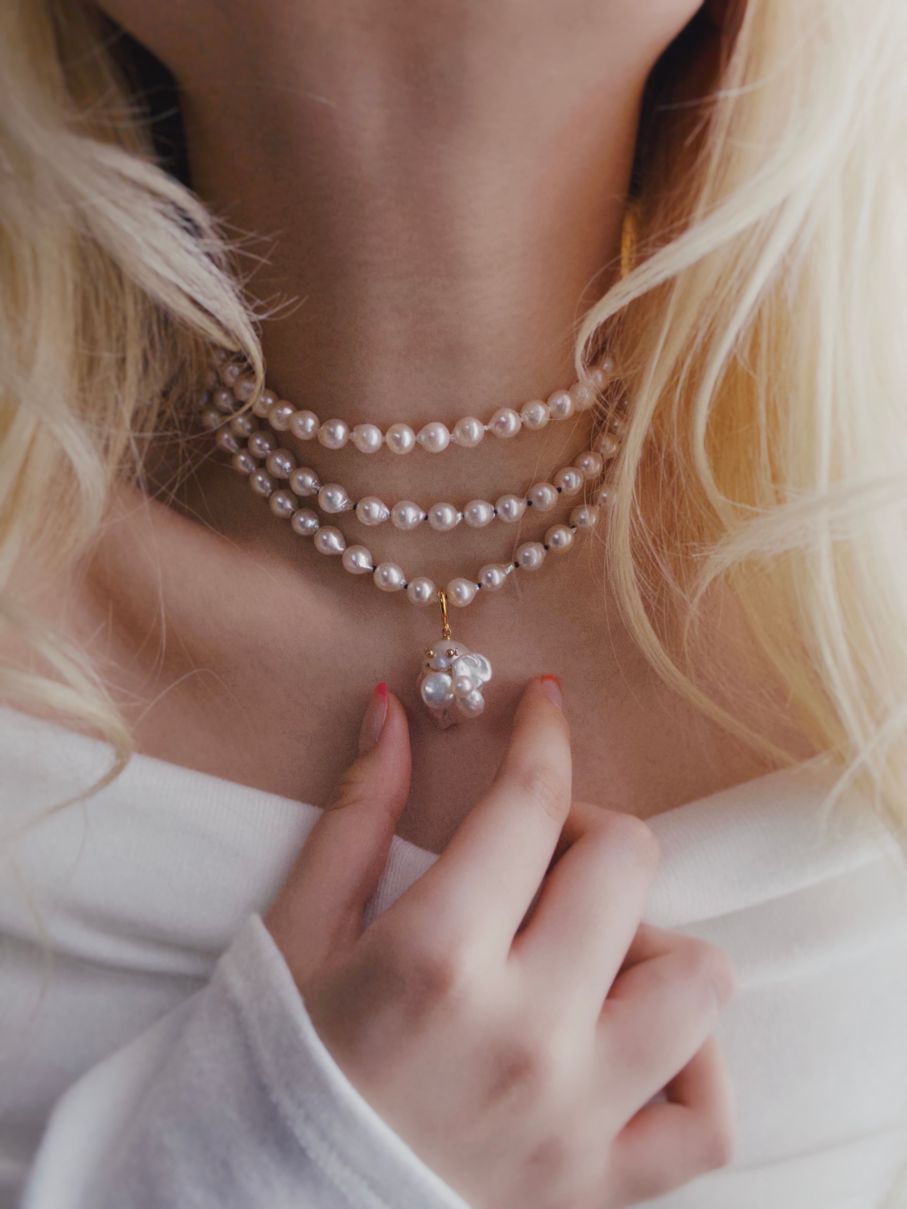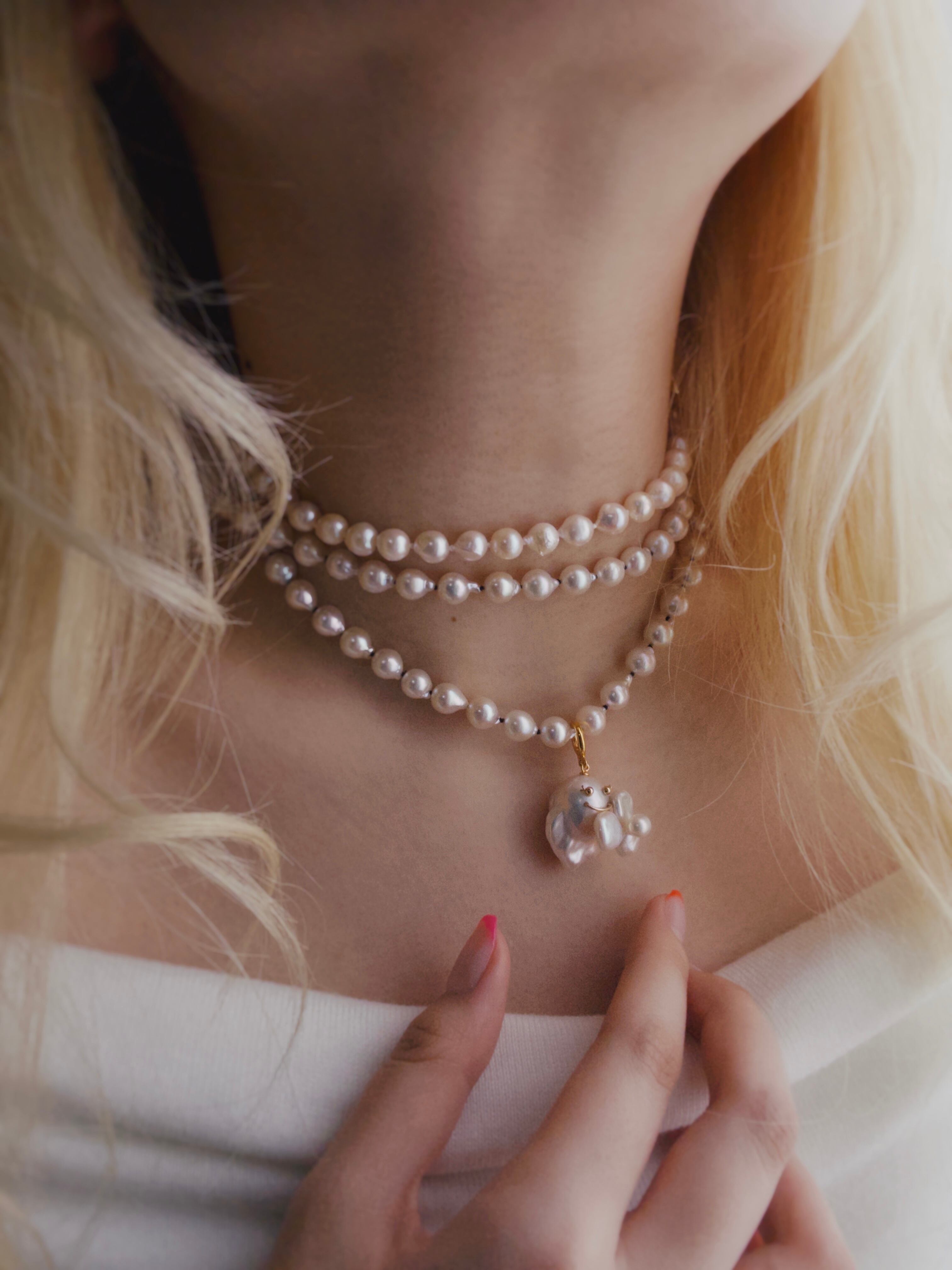 メインのバロックパールは、風にふわっと揺れるスカートみたいなフォルム♡