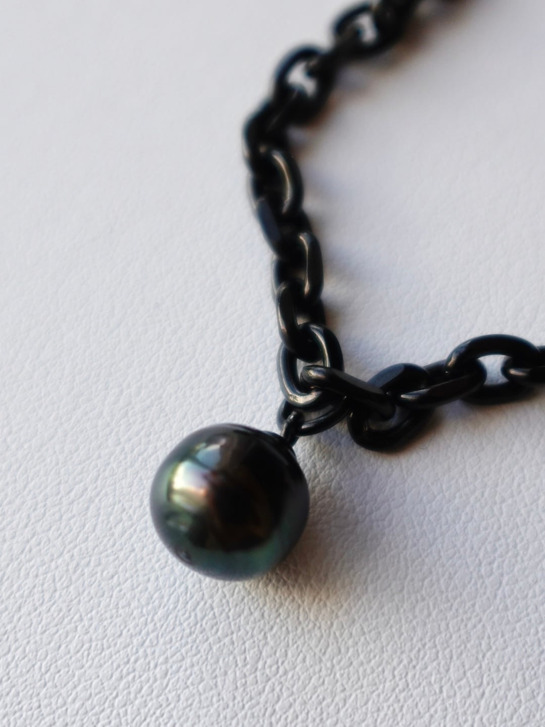 黒蝶真珠バロックとチェーンのカラーが一体化となって