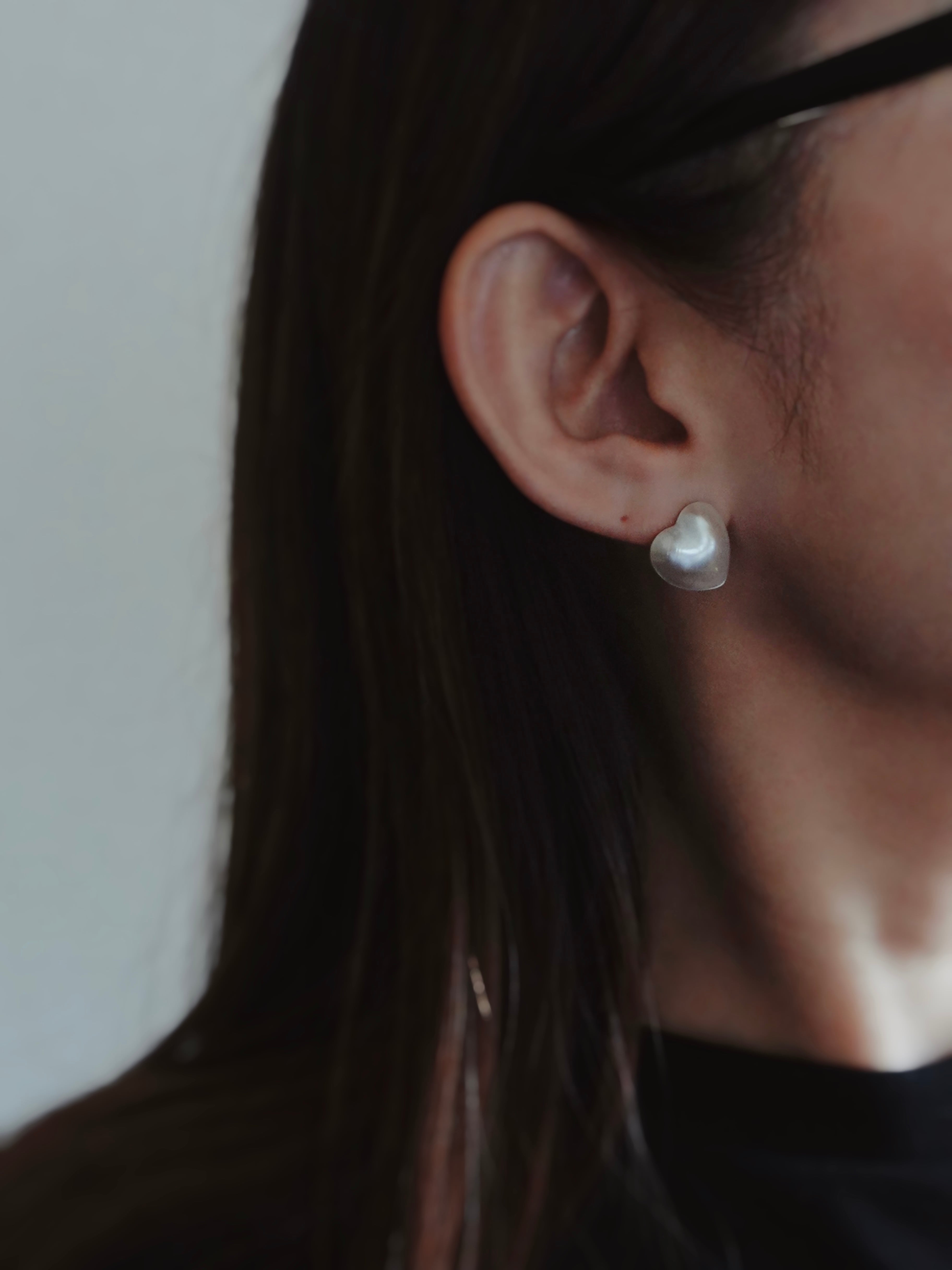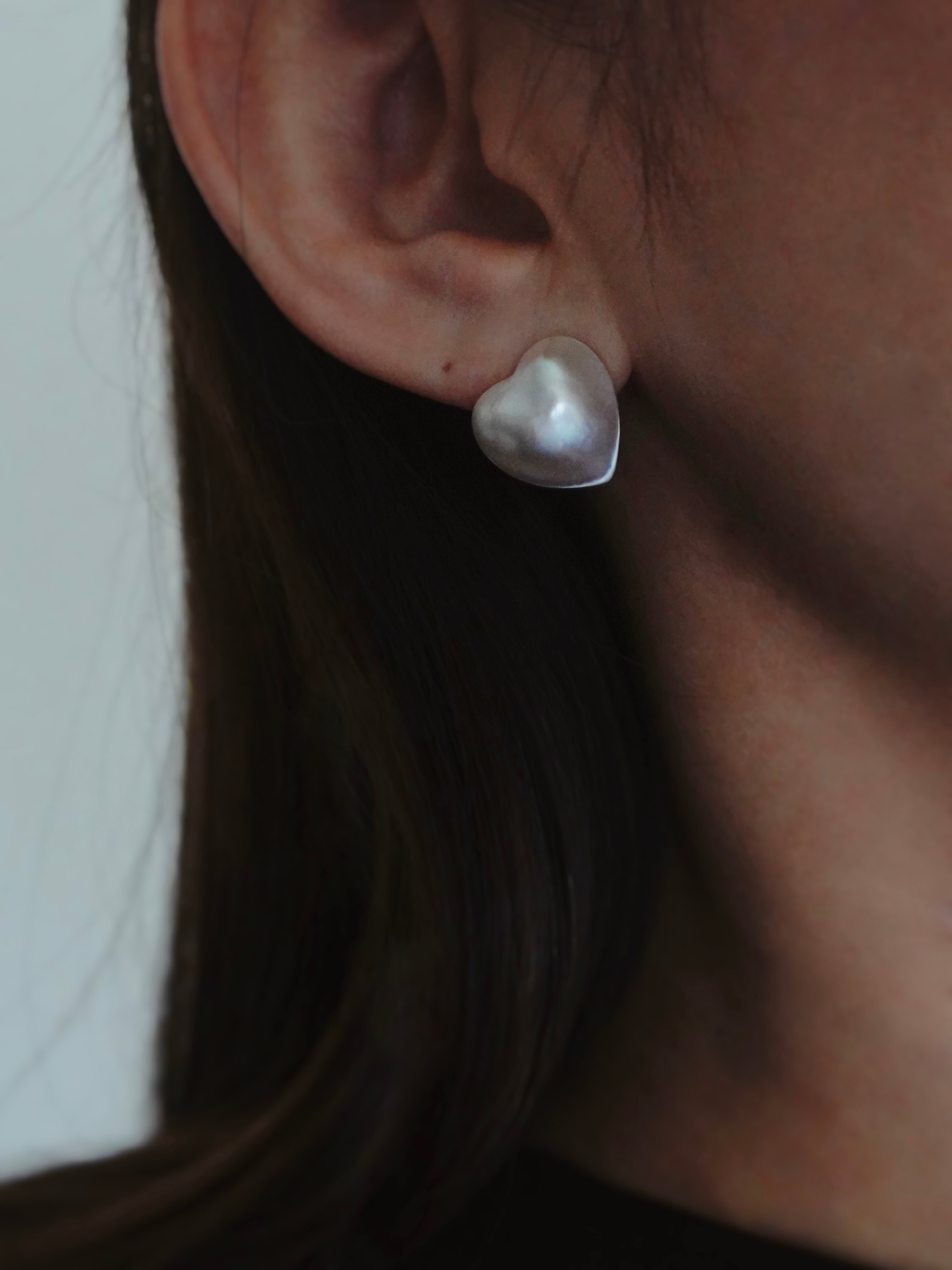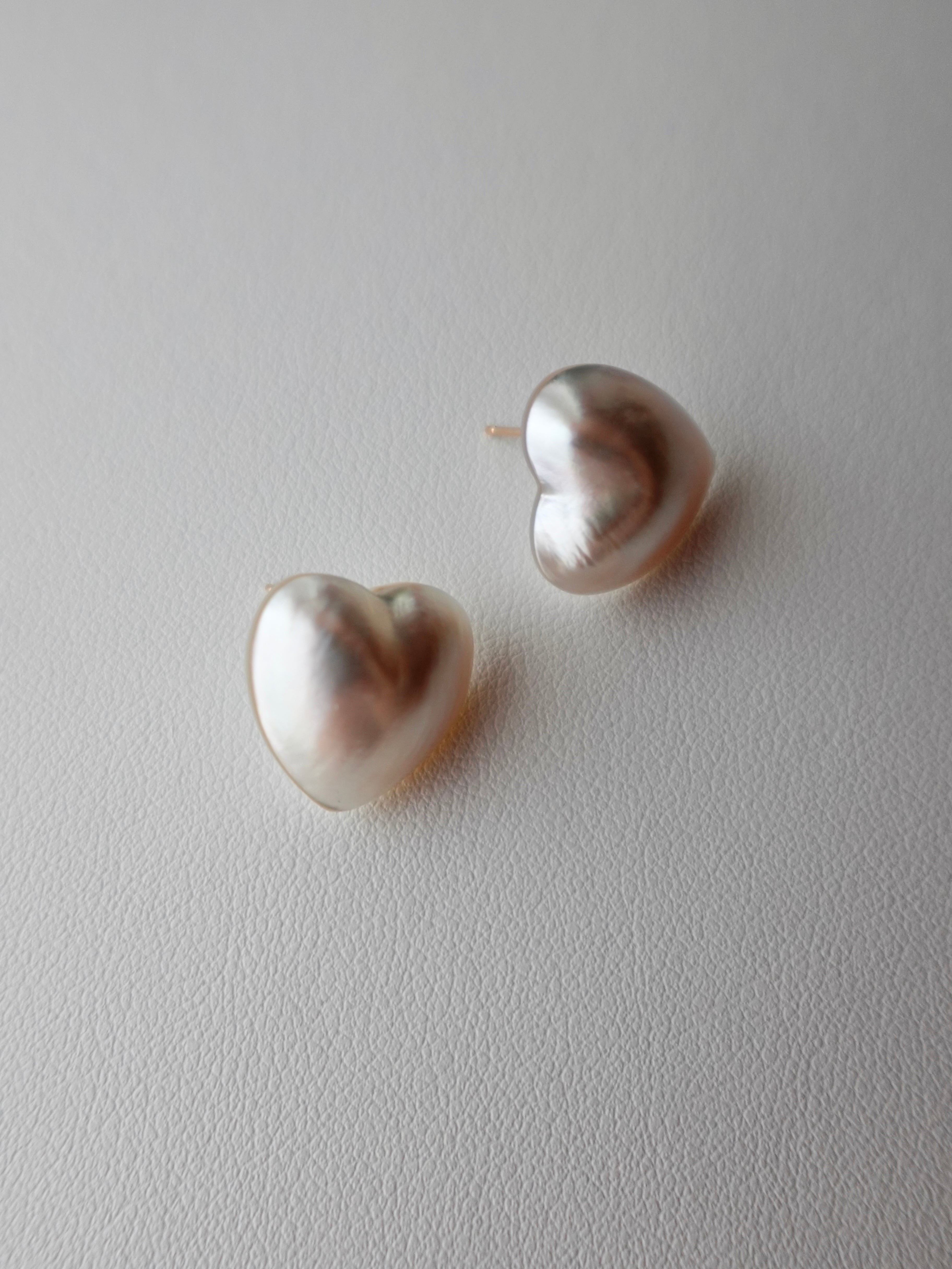 こちらのピアスは、ハートが斜めに見えるようにセッティングしており、イヤリングも可能です。