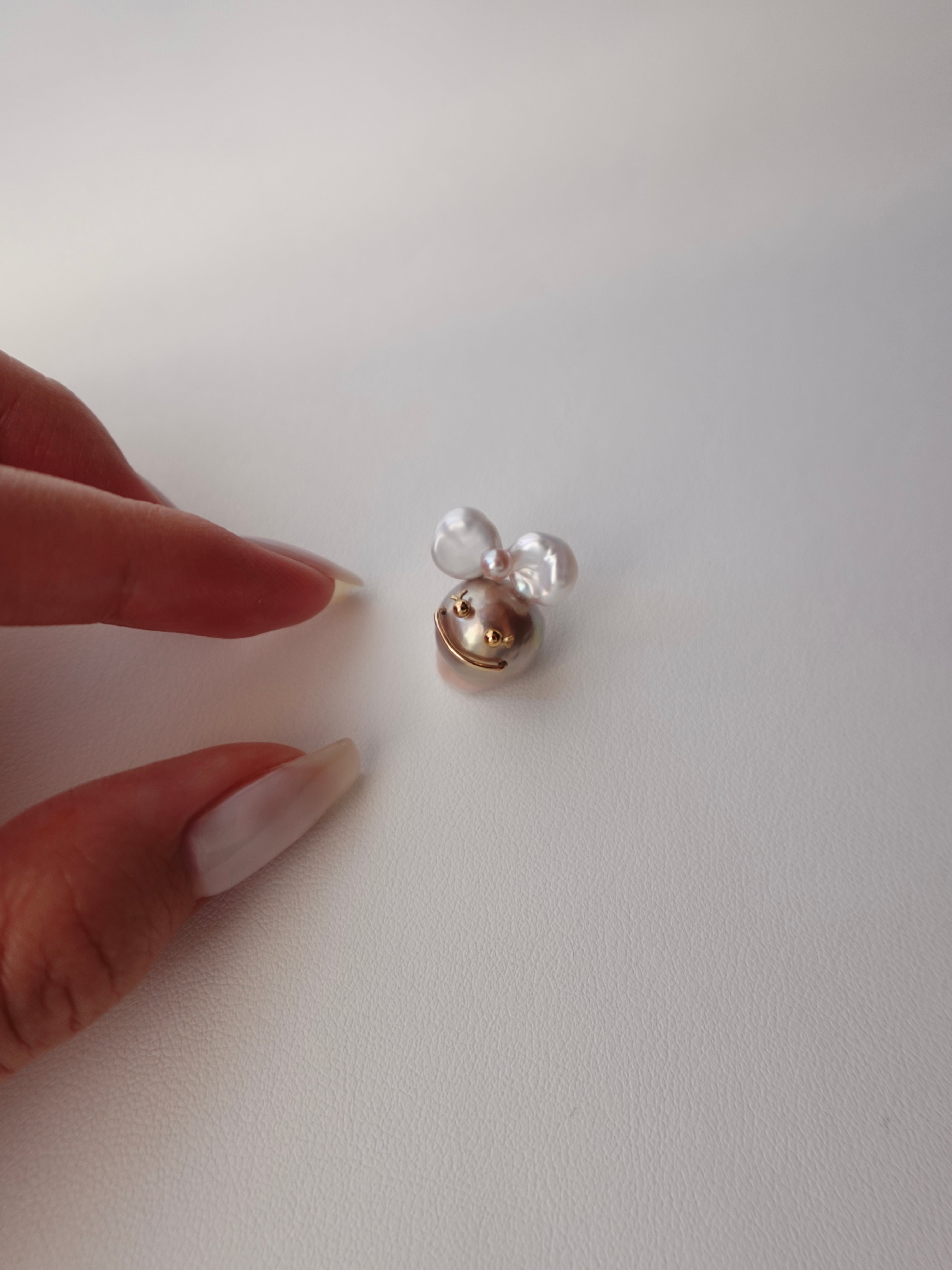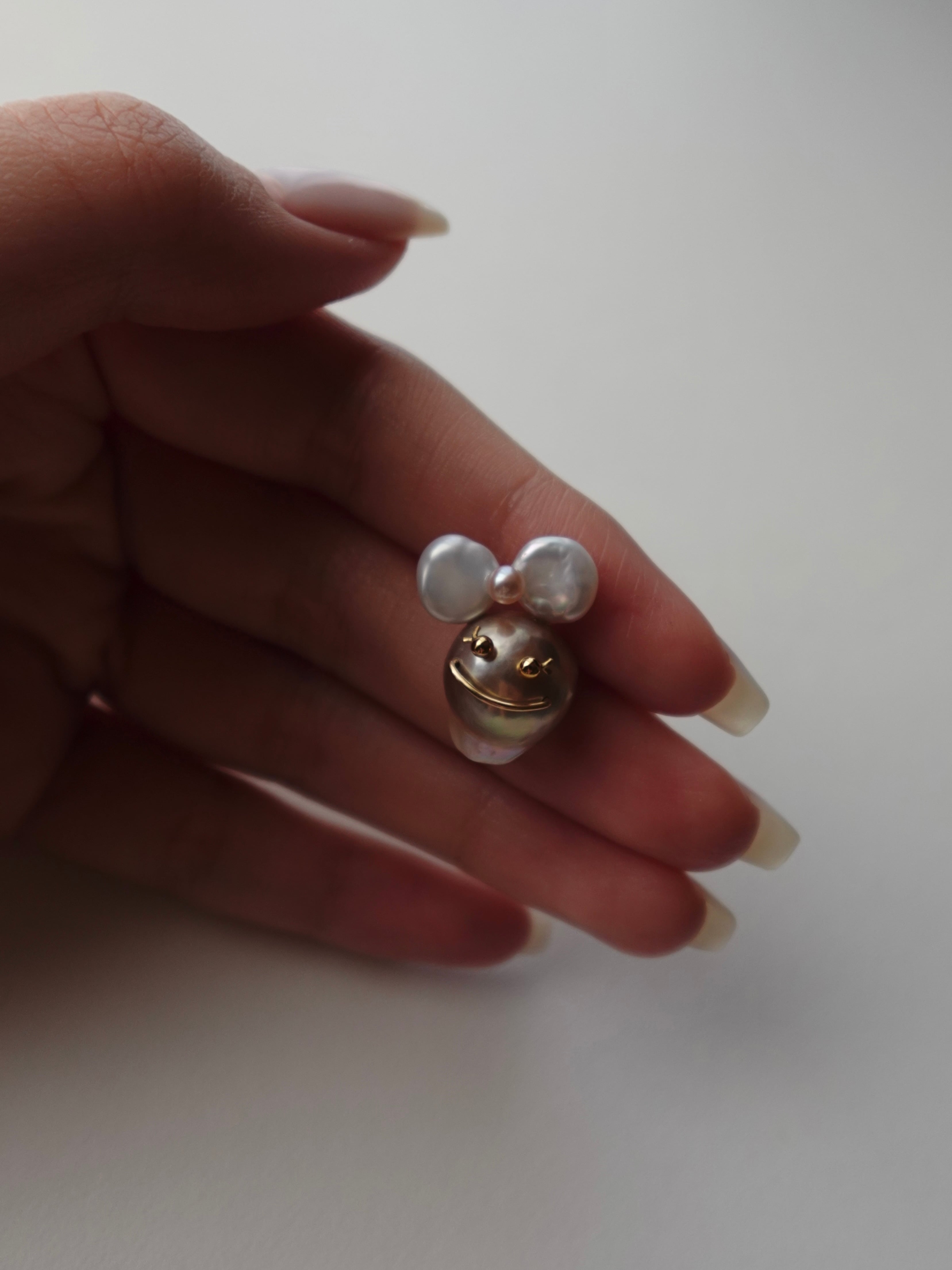 リボンモチーフには繊細な淡水ケシパールを使用。