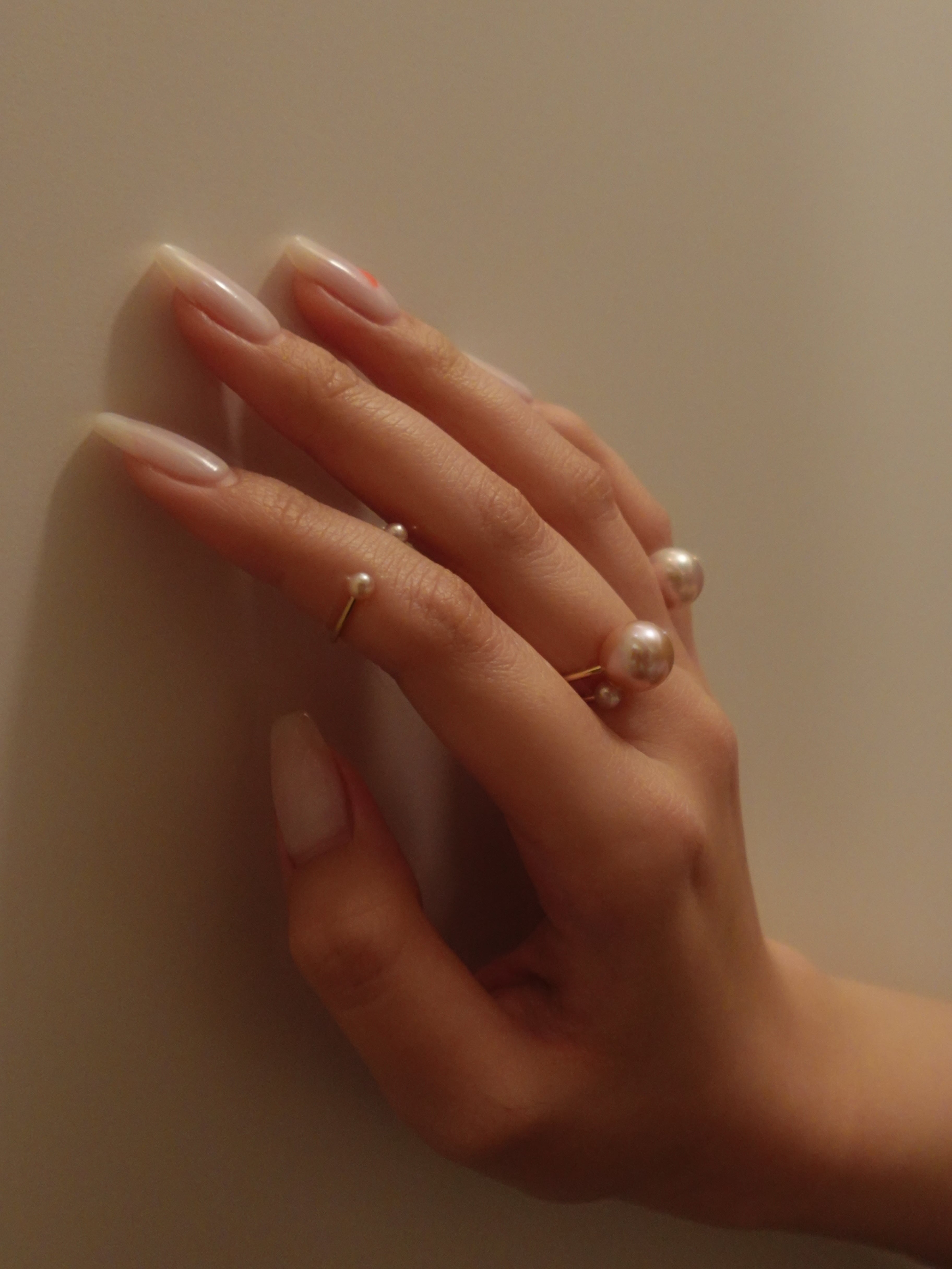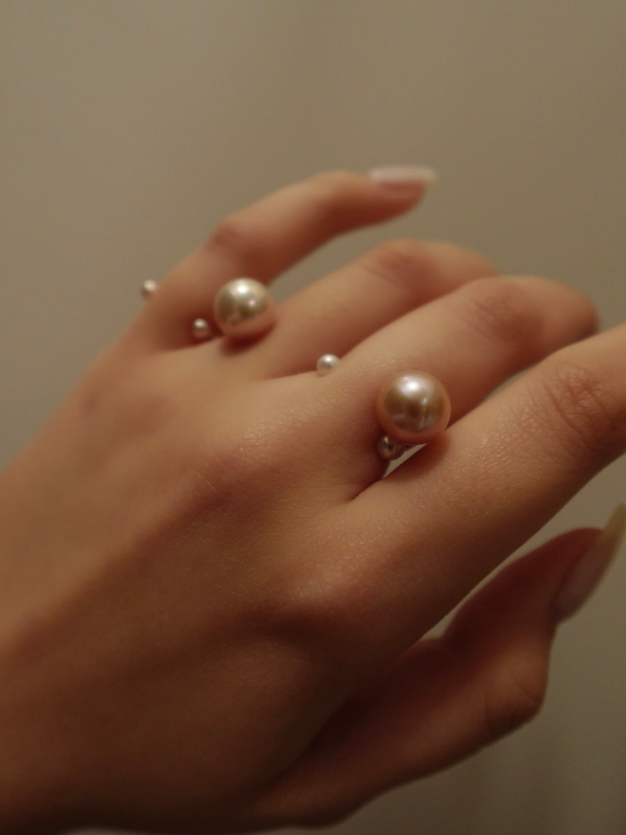 プチプチしたベビーパールが印象的で愛らしいリング。