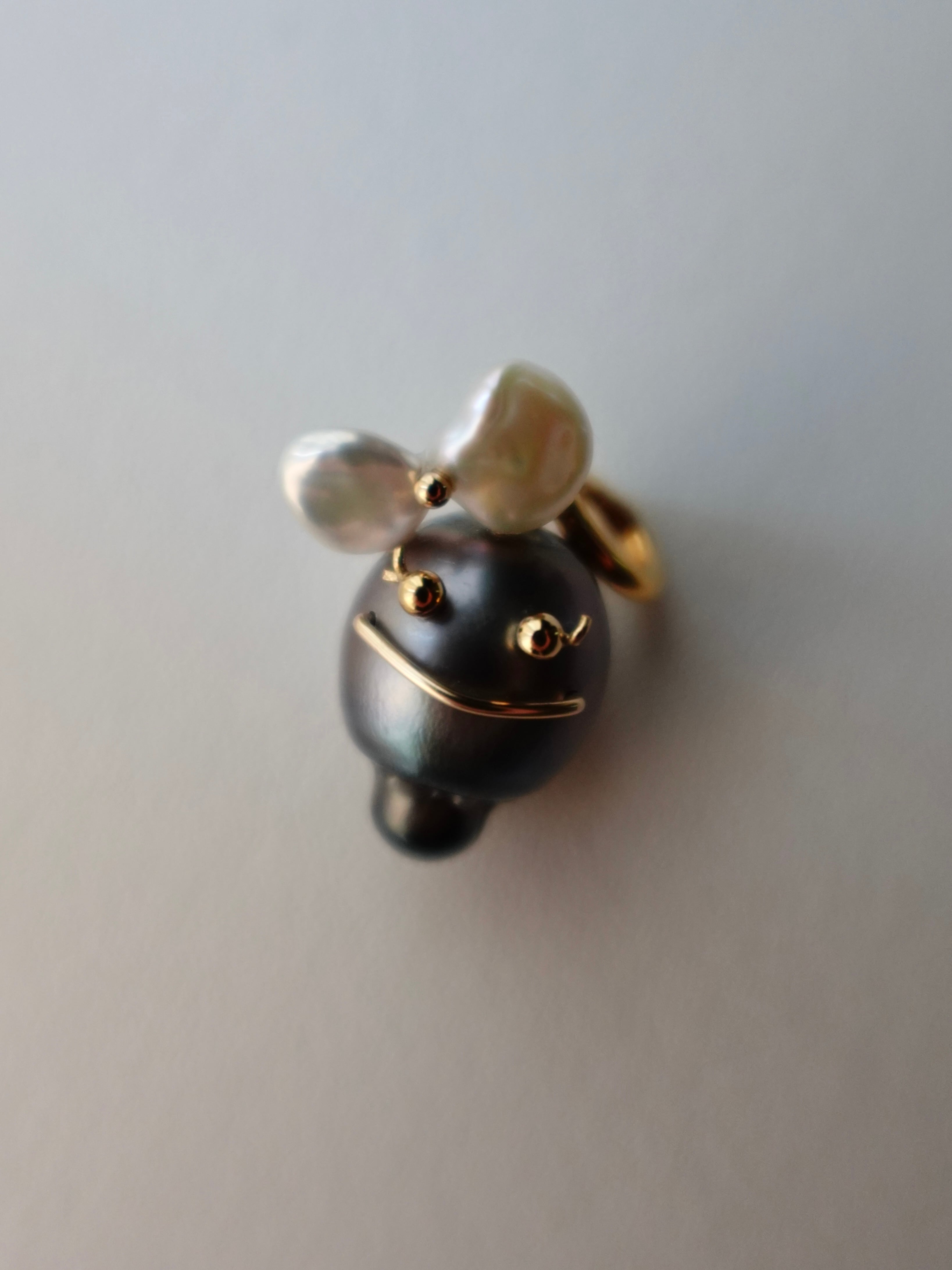 淡水ケシパールで仕立てたリボンをちょこんと添えた