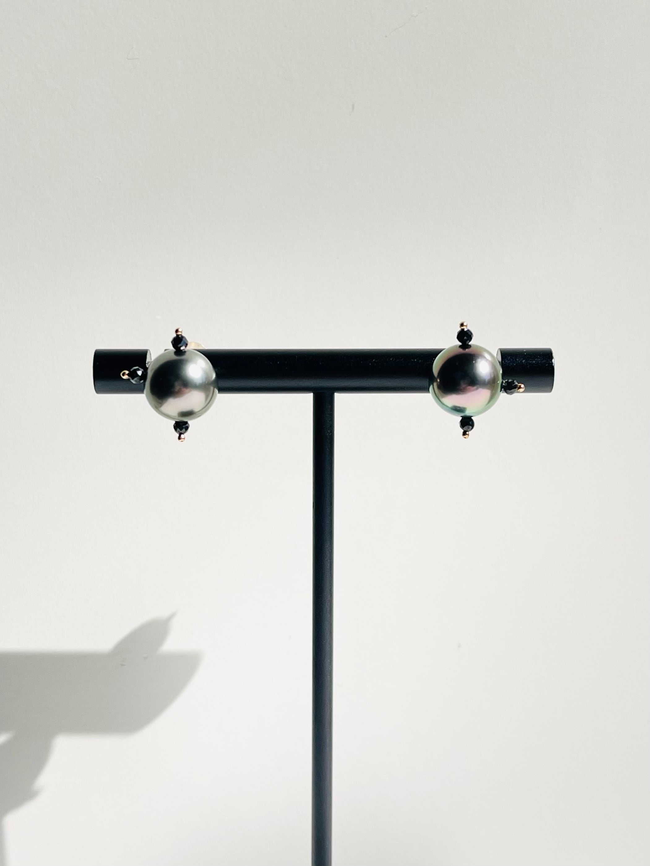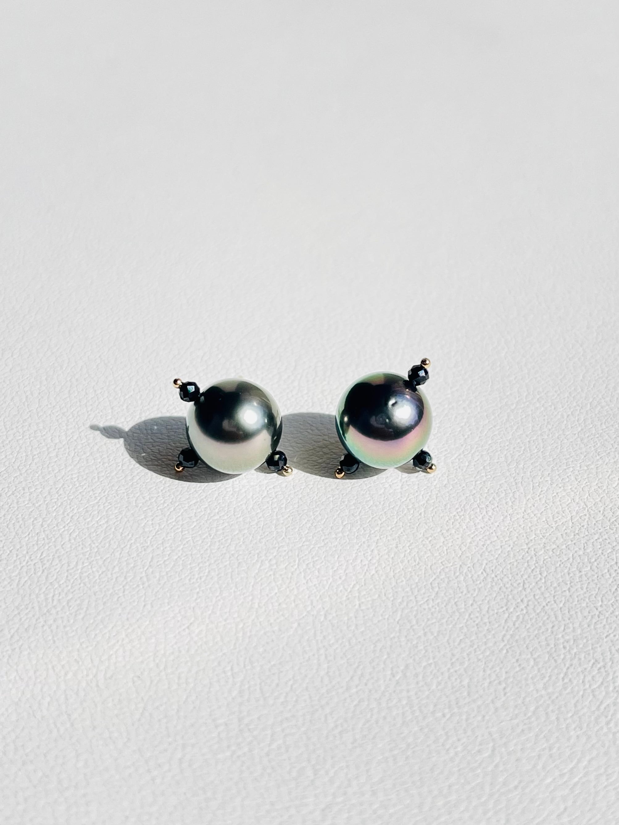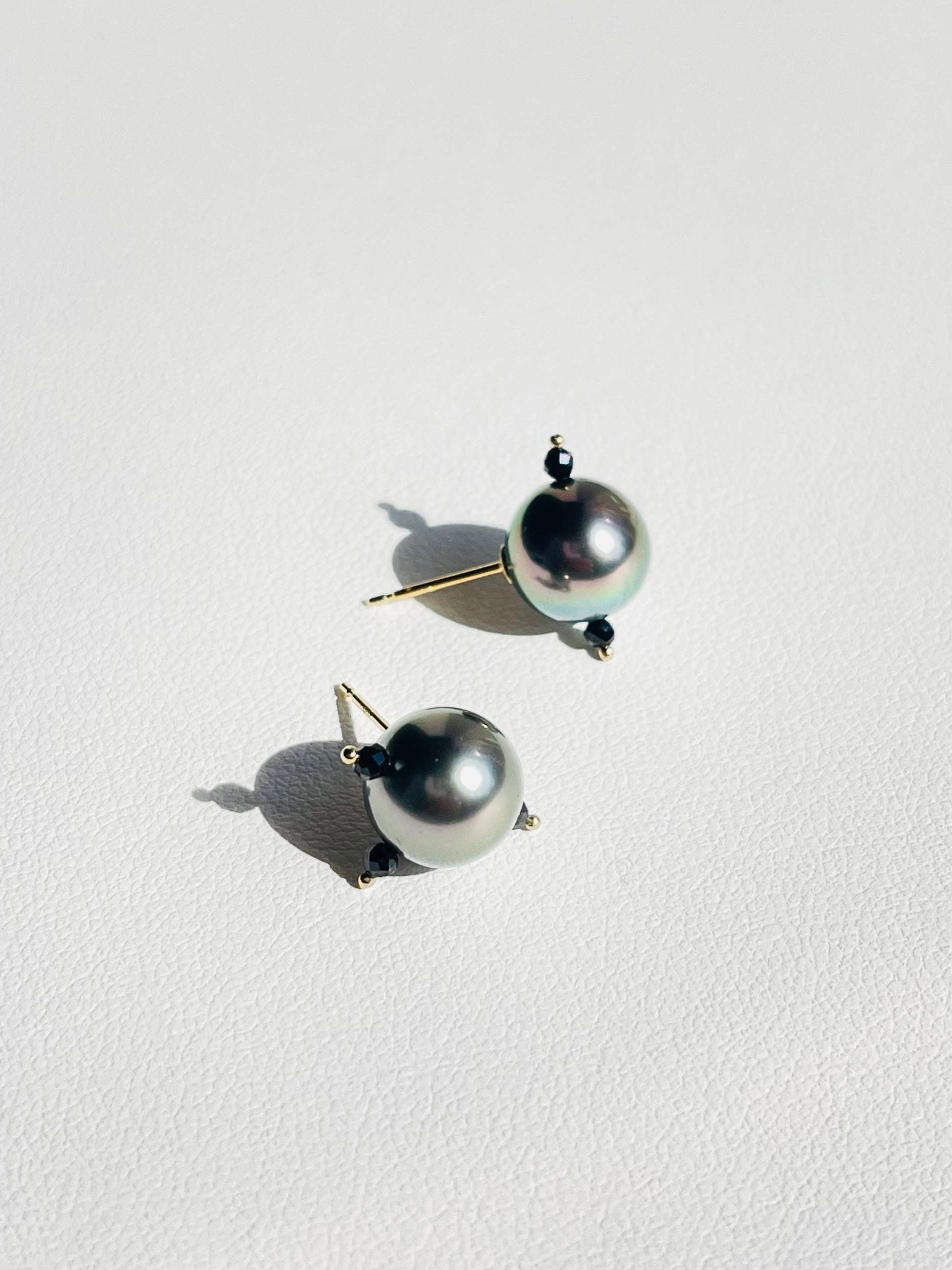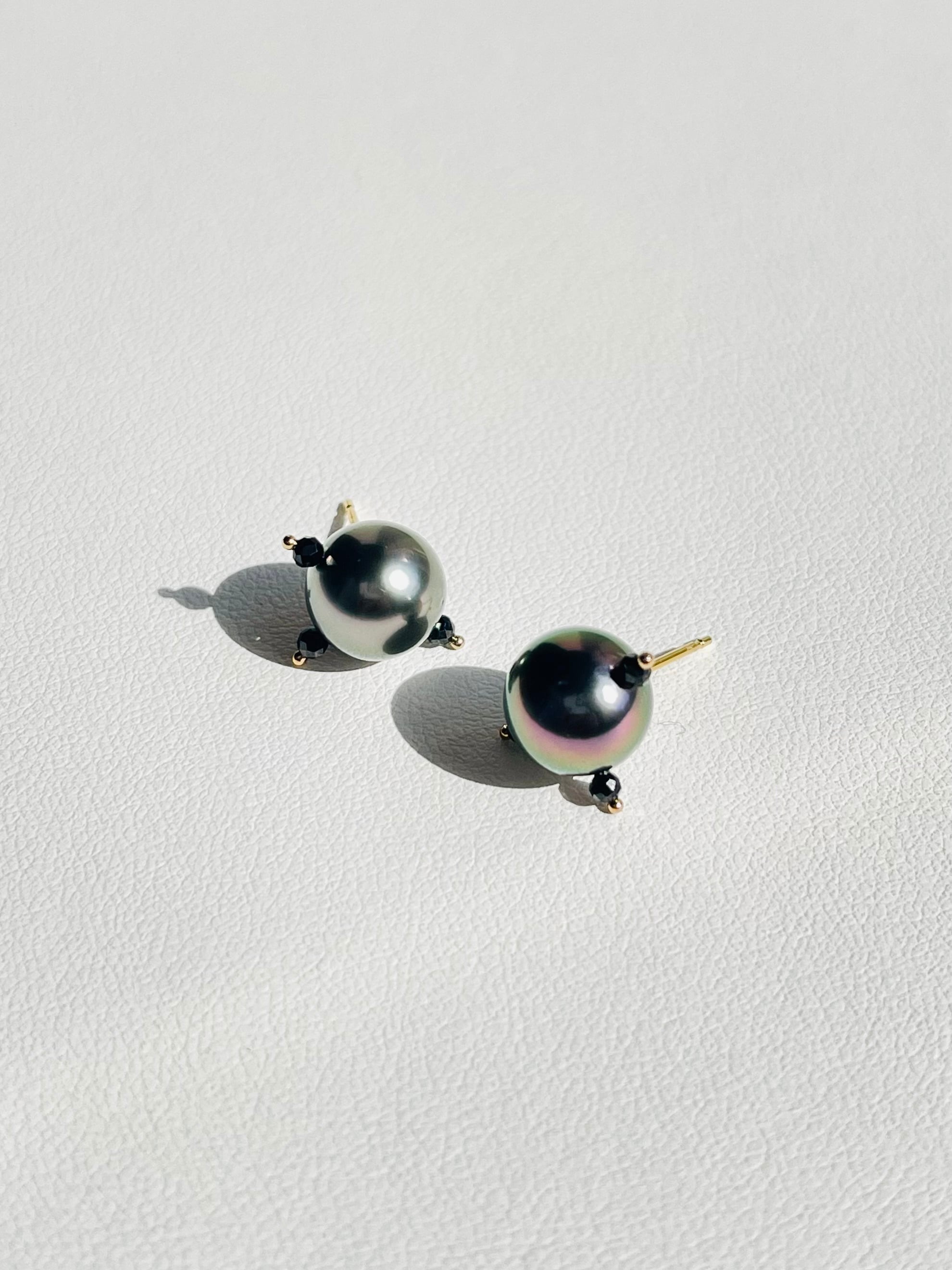 黒蝶真珠にはブラックスピネルをスタッズの様に