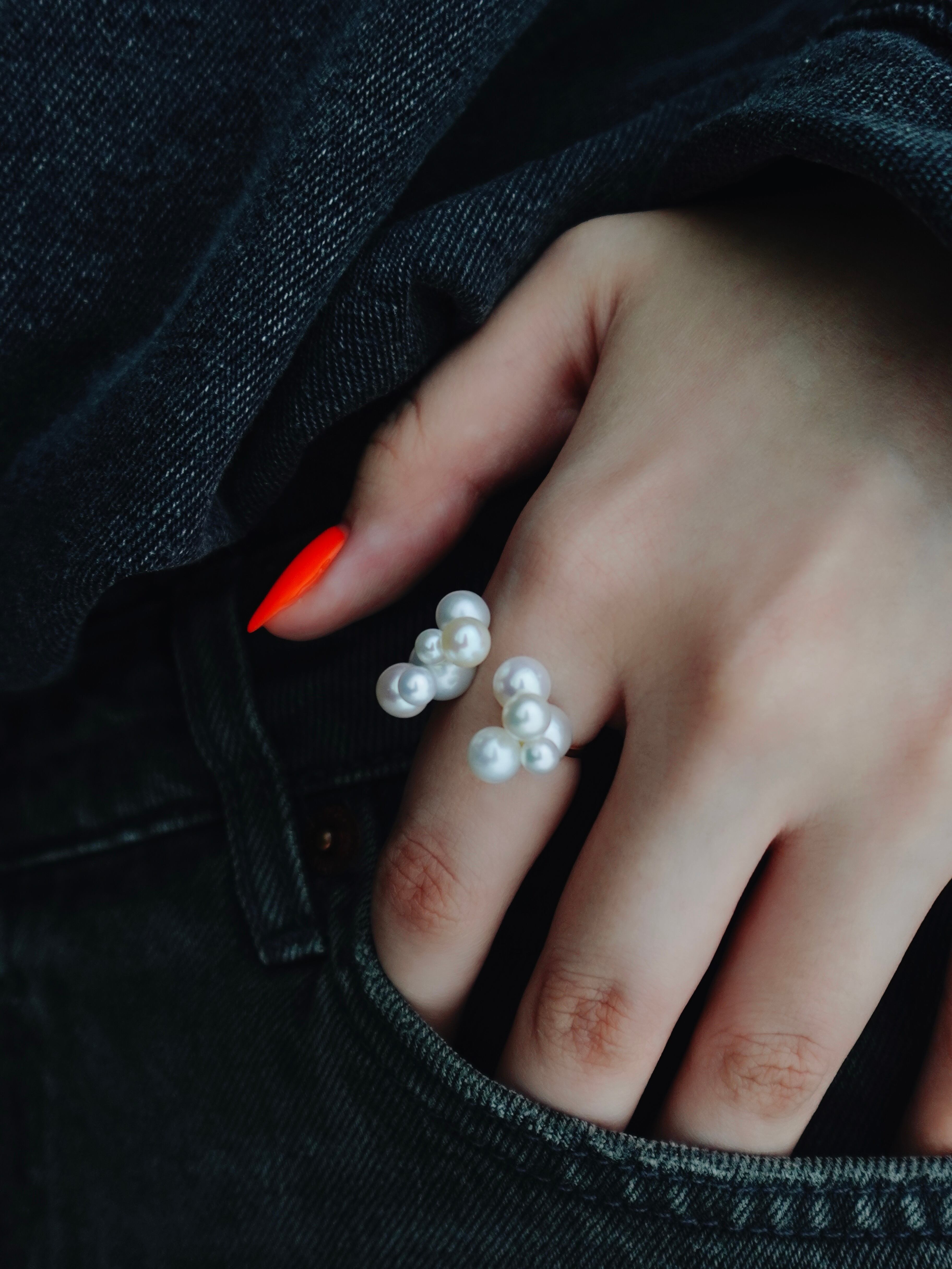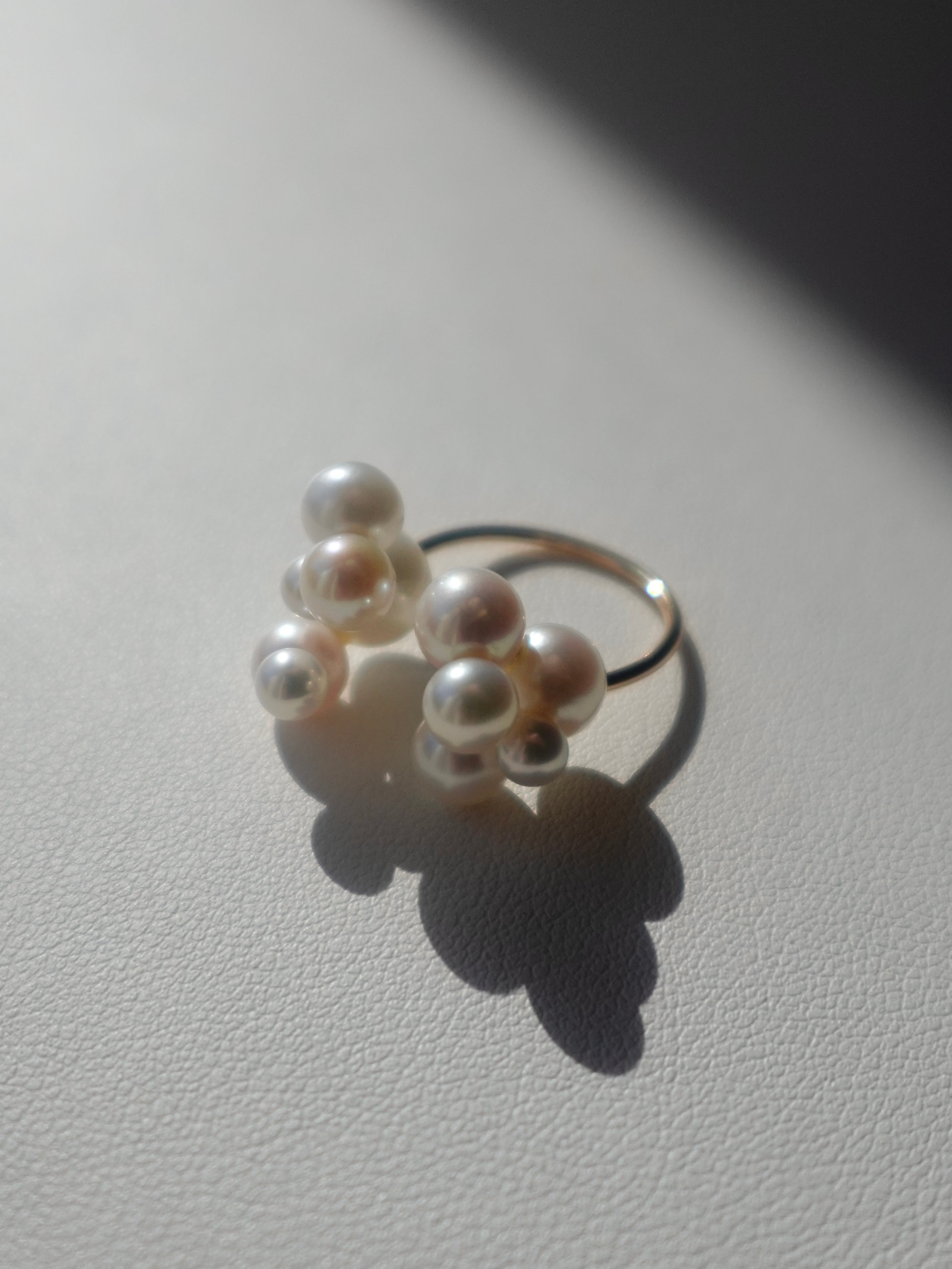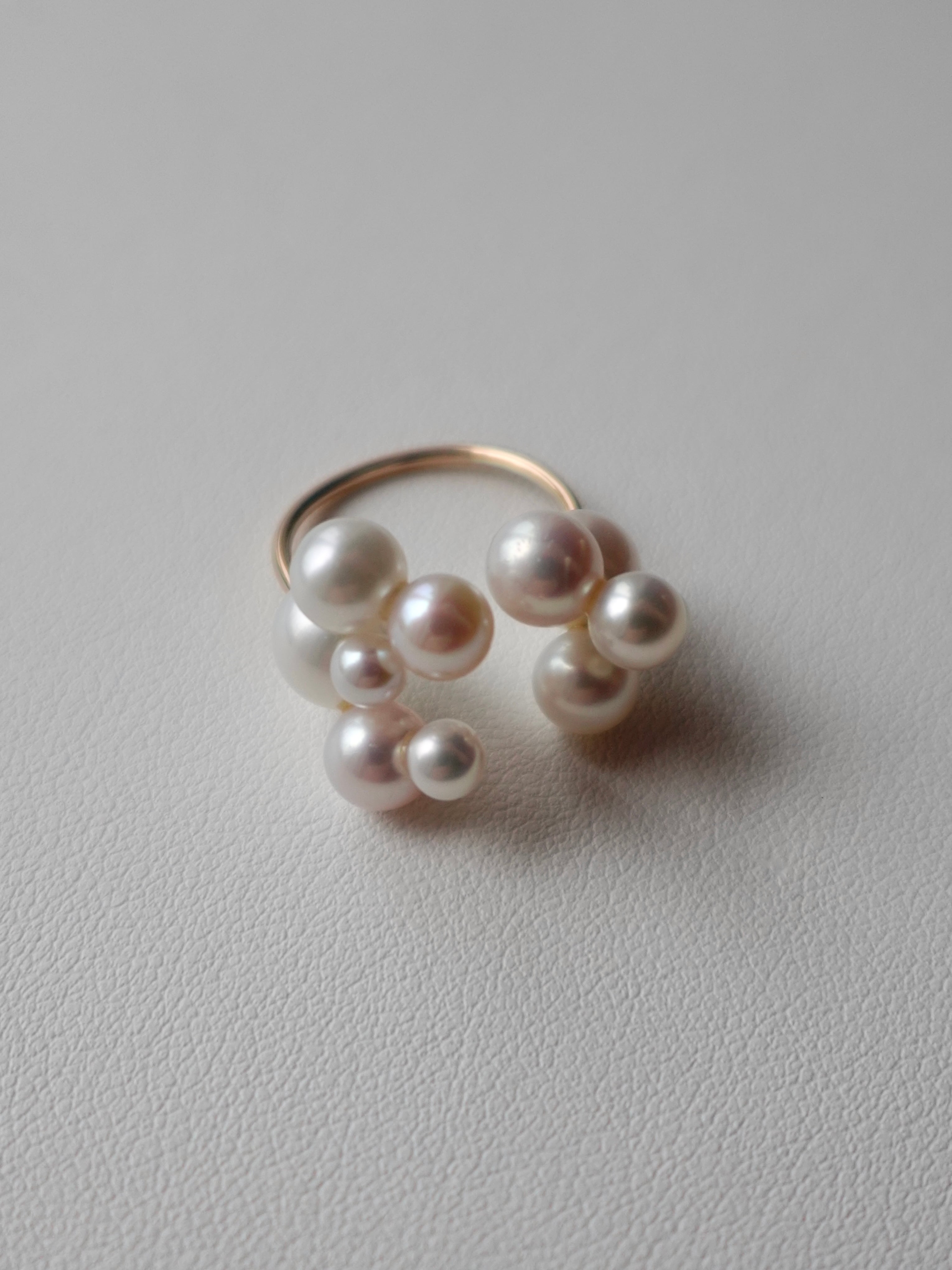 バランス見ながら配置する為、一点毎にデザインが若干異なったりパールの数が違う場合もございます。