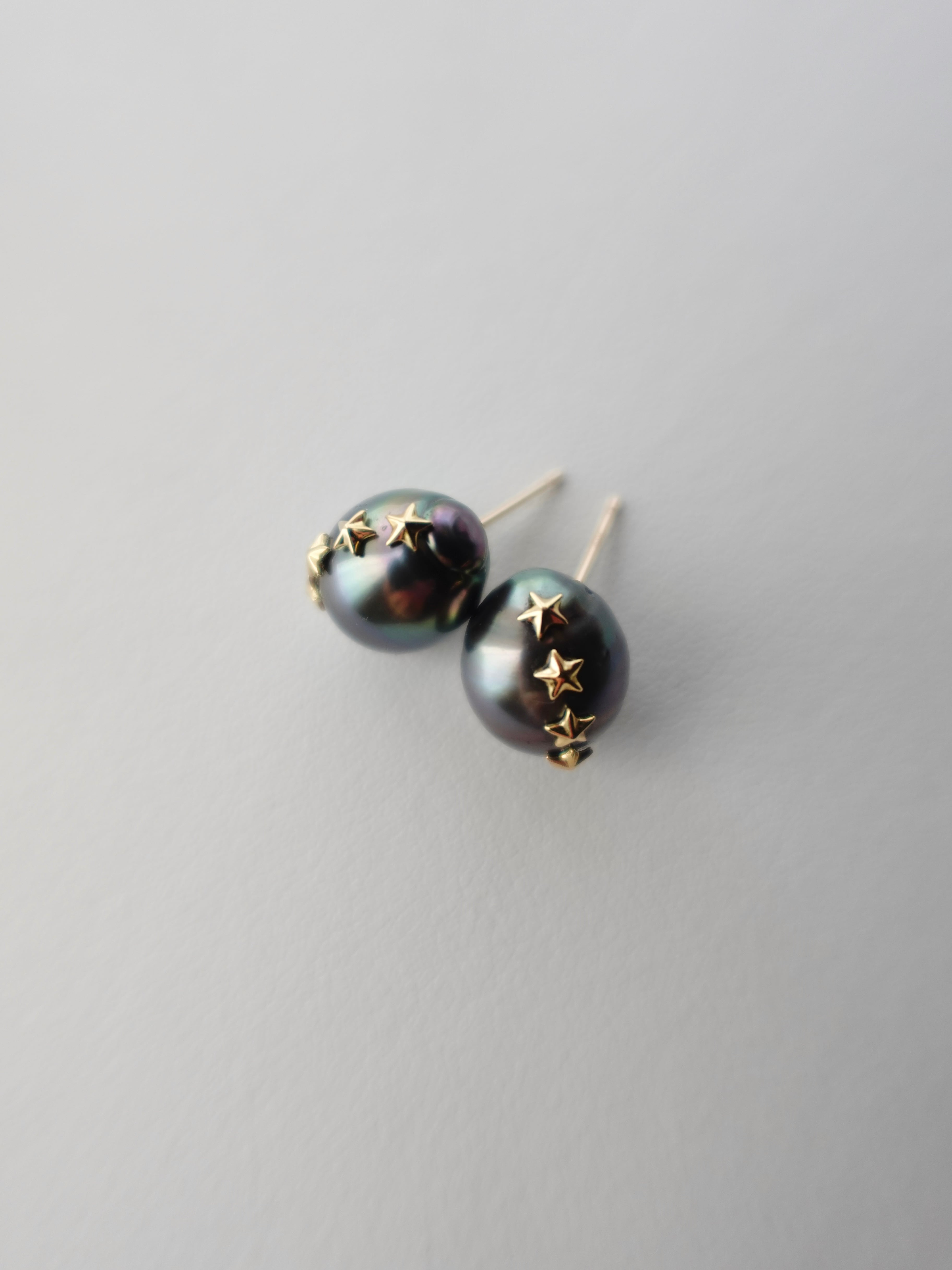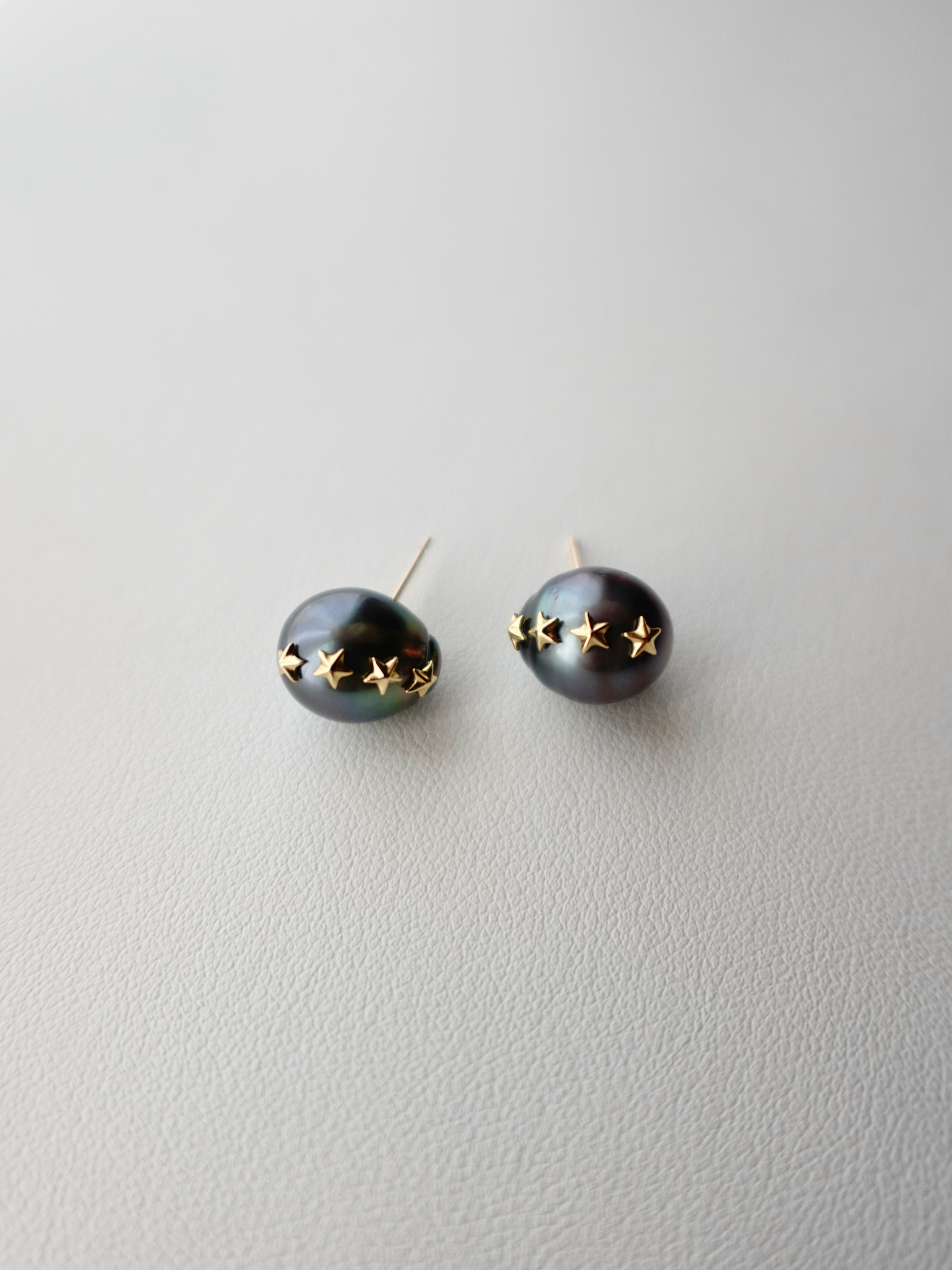 ふっくらしたドロップ形の黒蝶にK18YG星スタッズを並べて、ハードカジュアル&エレガントを兼ね備えた