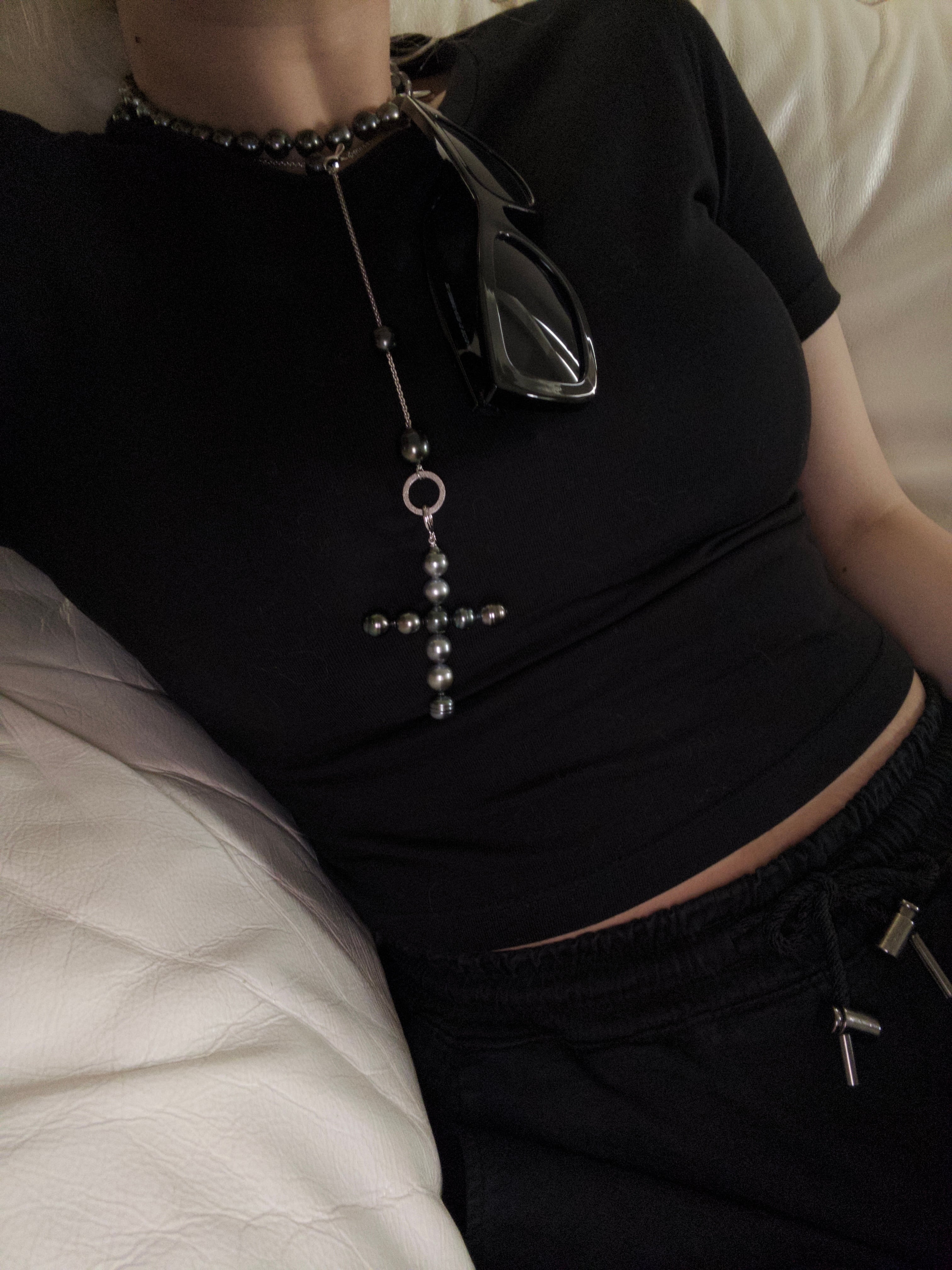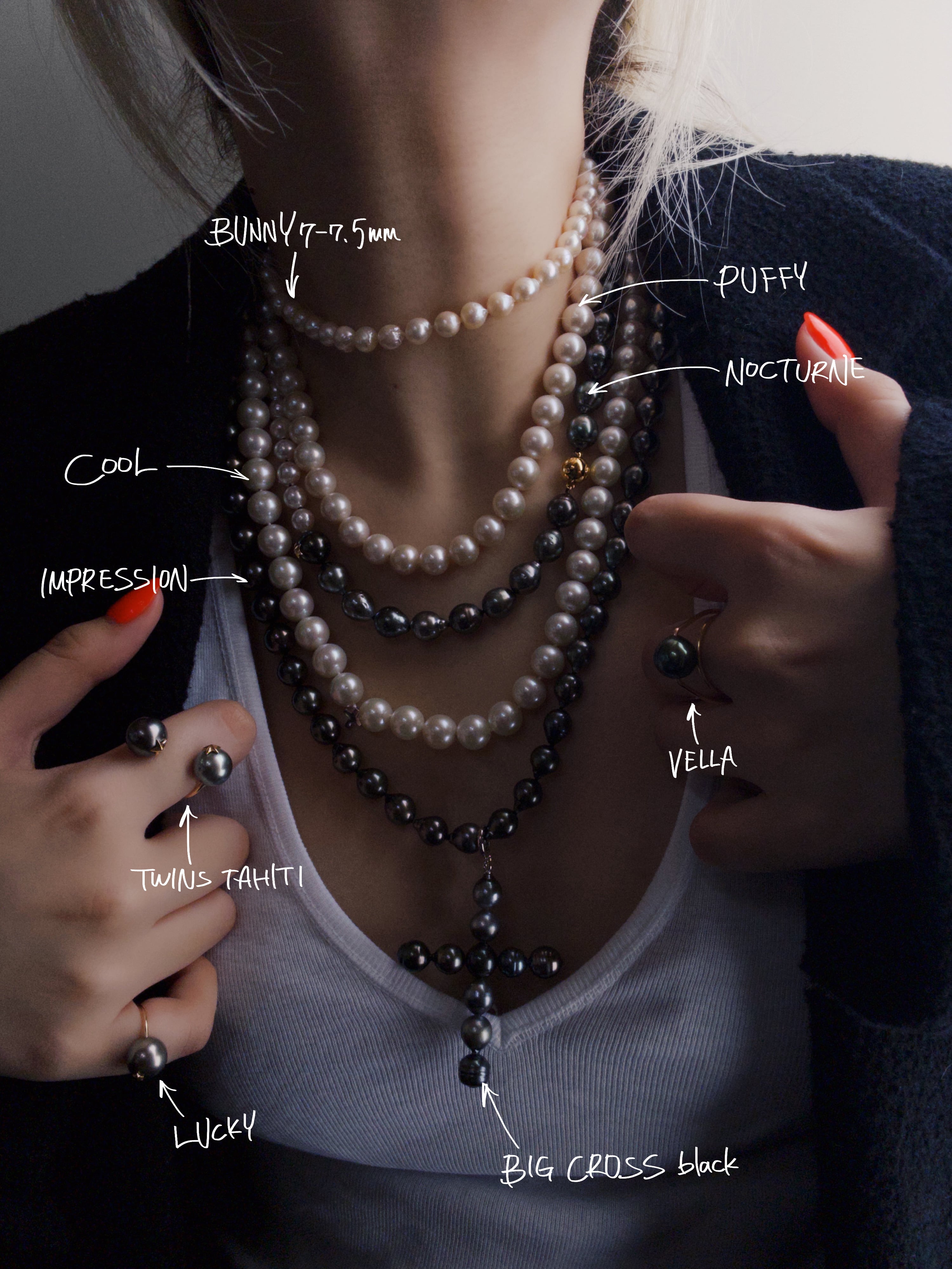 黒蝶真珠の微妙なグレー、グリーン、ブロンズのニュアンスが連なることで、まるで一つの詩のよう。