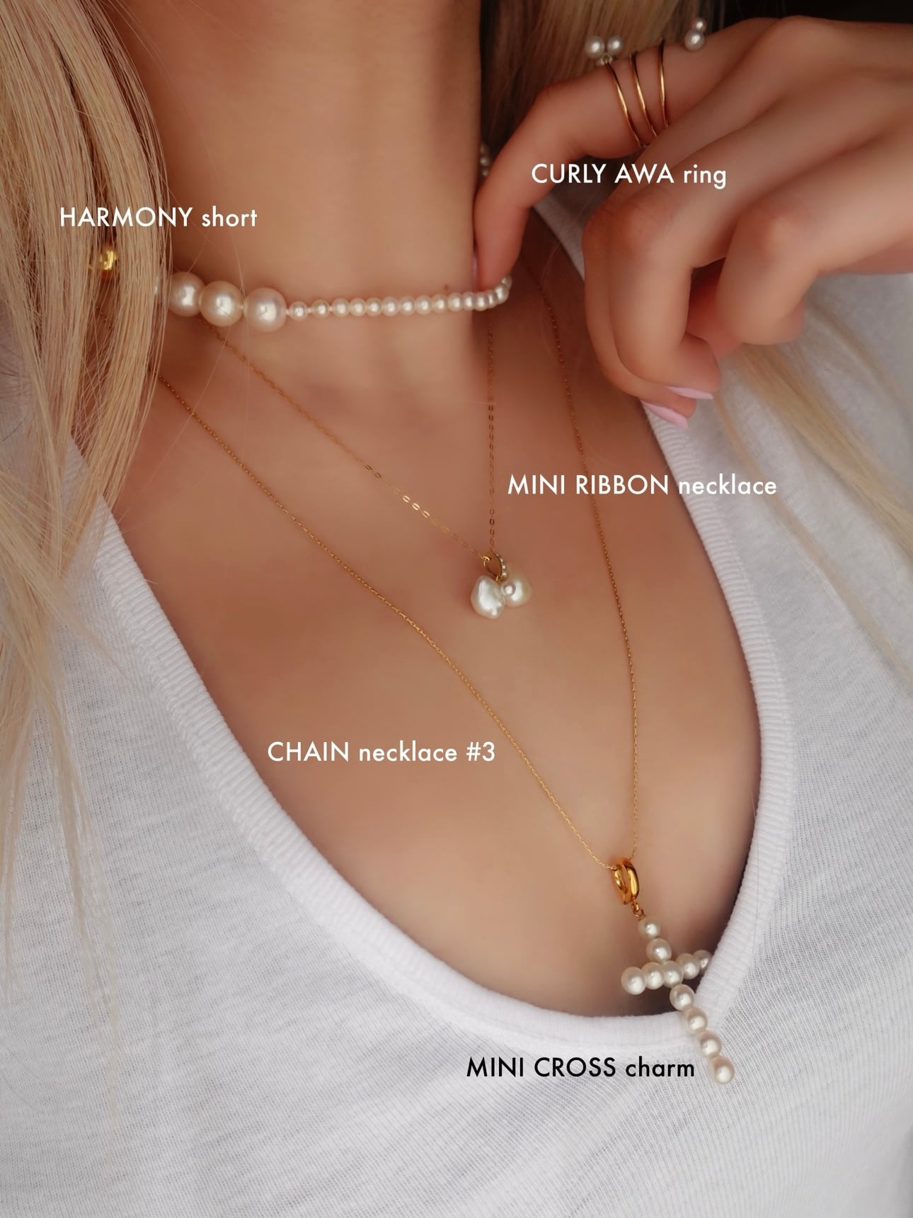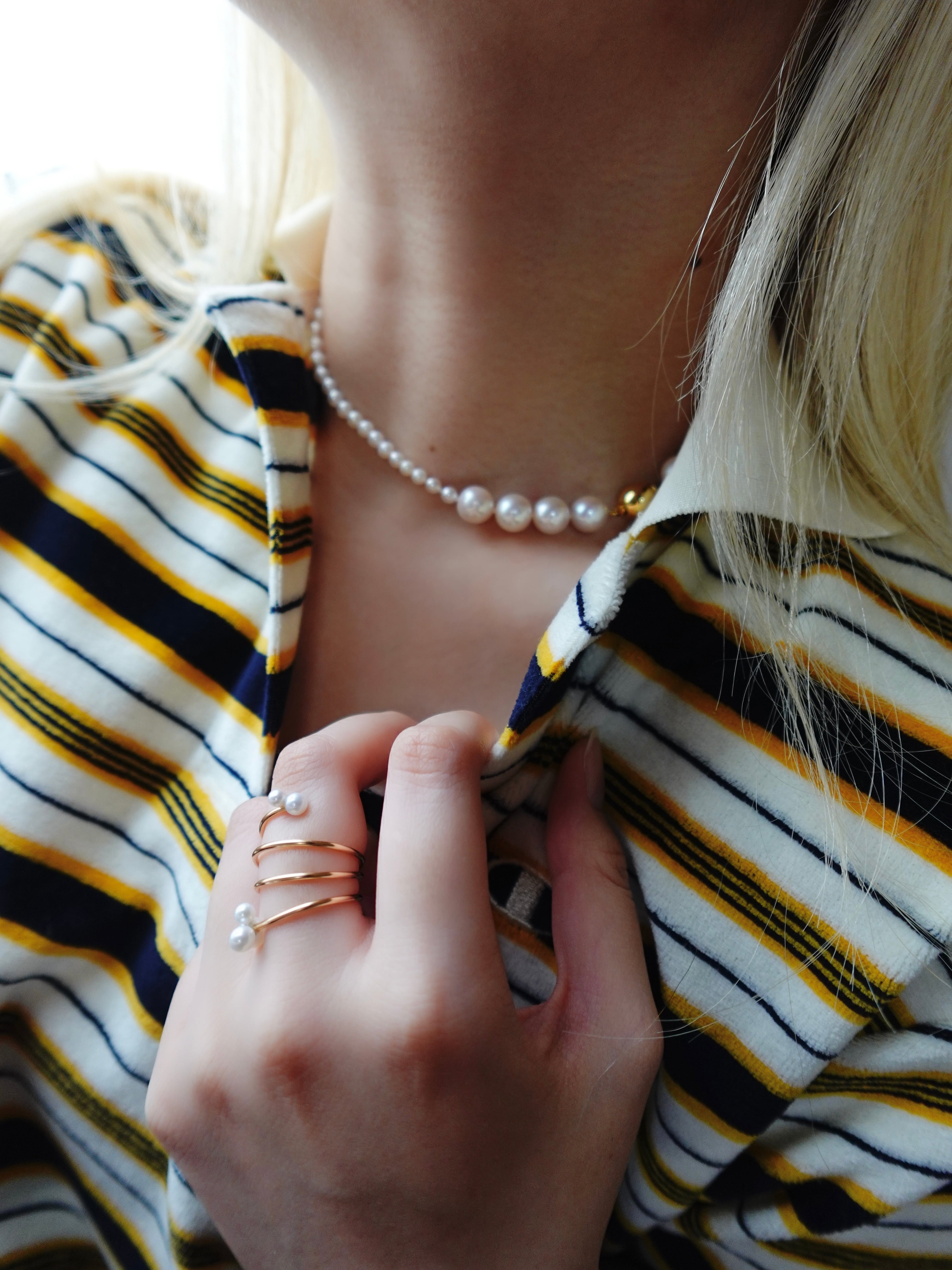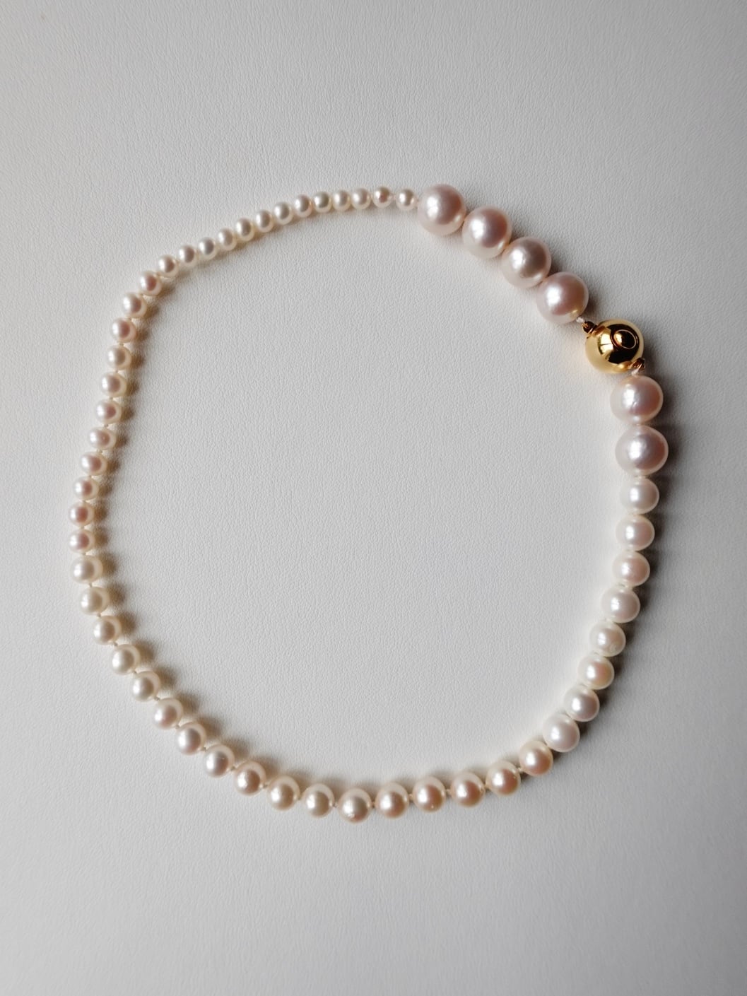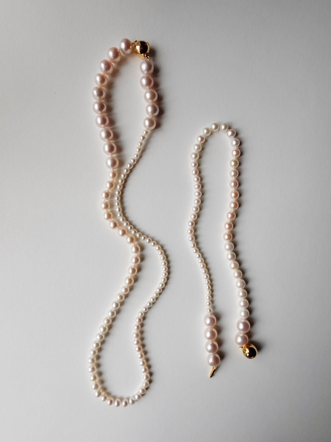 ホワイトパールのネックレスとなり、淡水真珠&あこや真珠のMIXグラデーション。