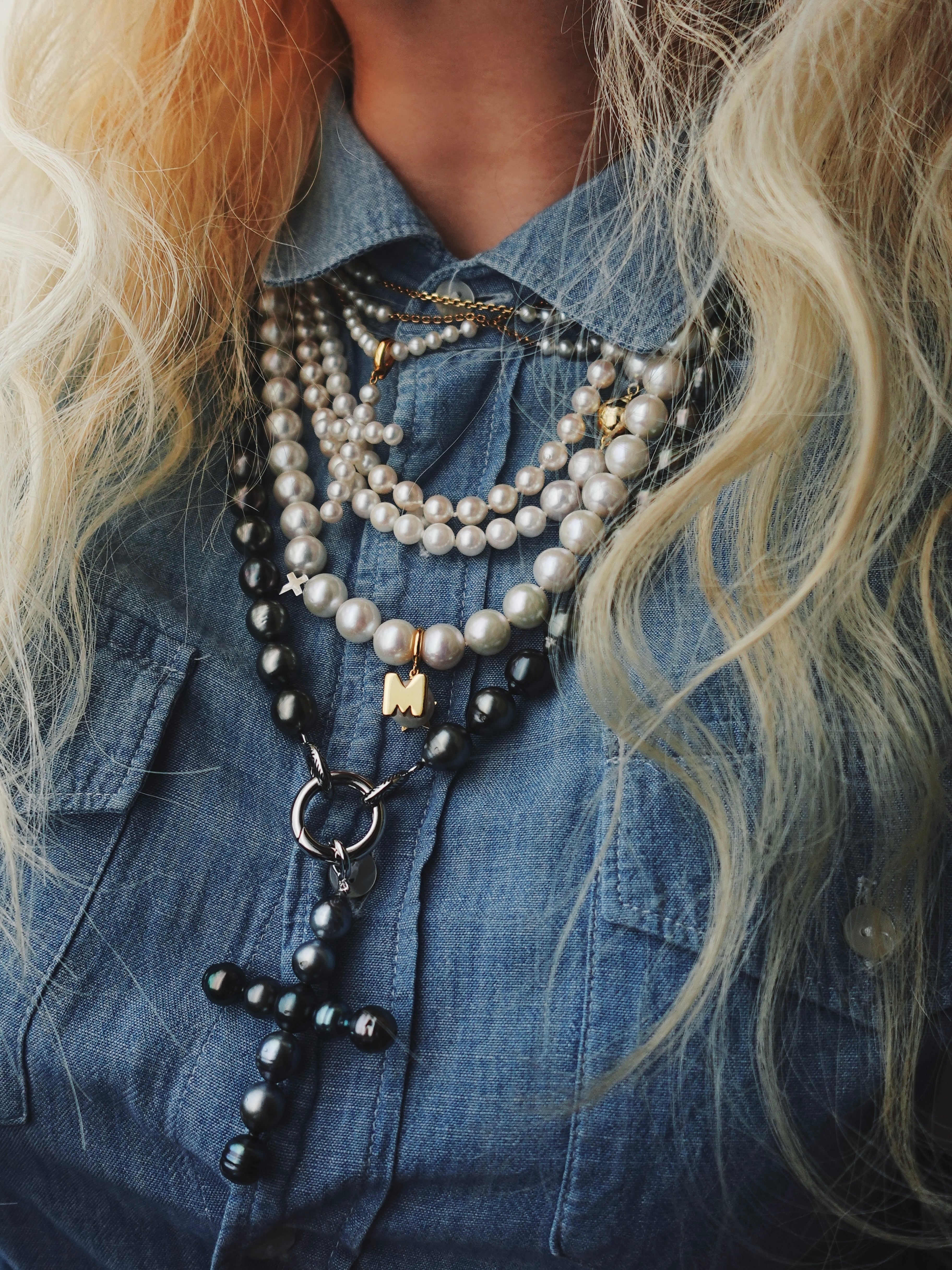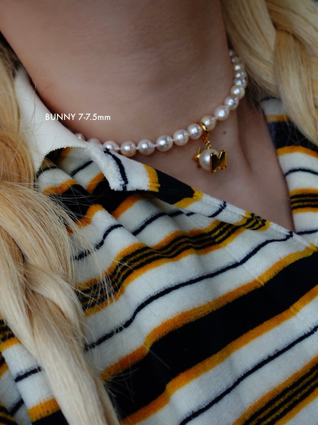 本真珠が隠れてしまうほどのアルファベットパーツが